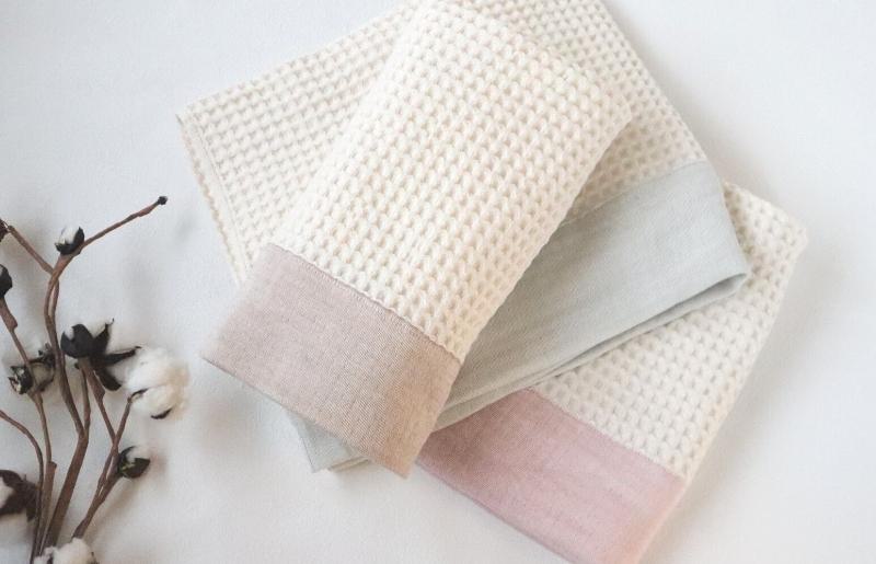 少し大き目のワッフルはふんわりとポコポコした風合いで、吸水性に優れ乾きが早いので日常使いに最適です。
