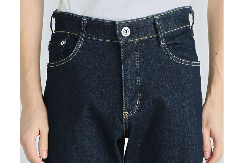 変則繻子組織を応用し横糸には特性の違う二種類の糸を打ち込むことで、デニムらしい表面感とニットの様な穿き心地に加え、年間快適に着用できる肌触りをプラスしました。
