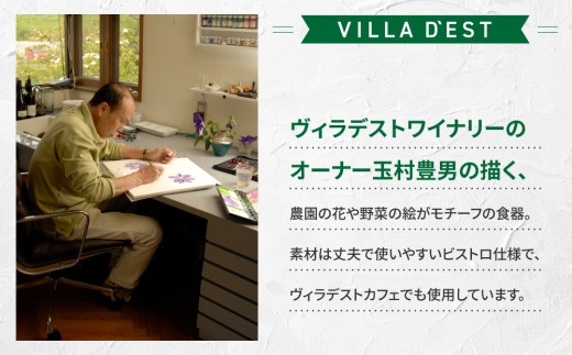 東御市のヴィラデスト ガーデンファーム アンド ワイナリーのオーナーであり、エッセイスト・画家の玉村豊男さんが、農園のお野菜たちを描いたお皿のシリーズ。