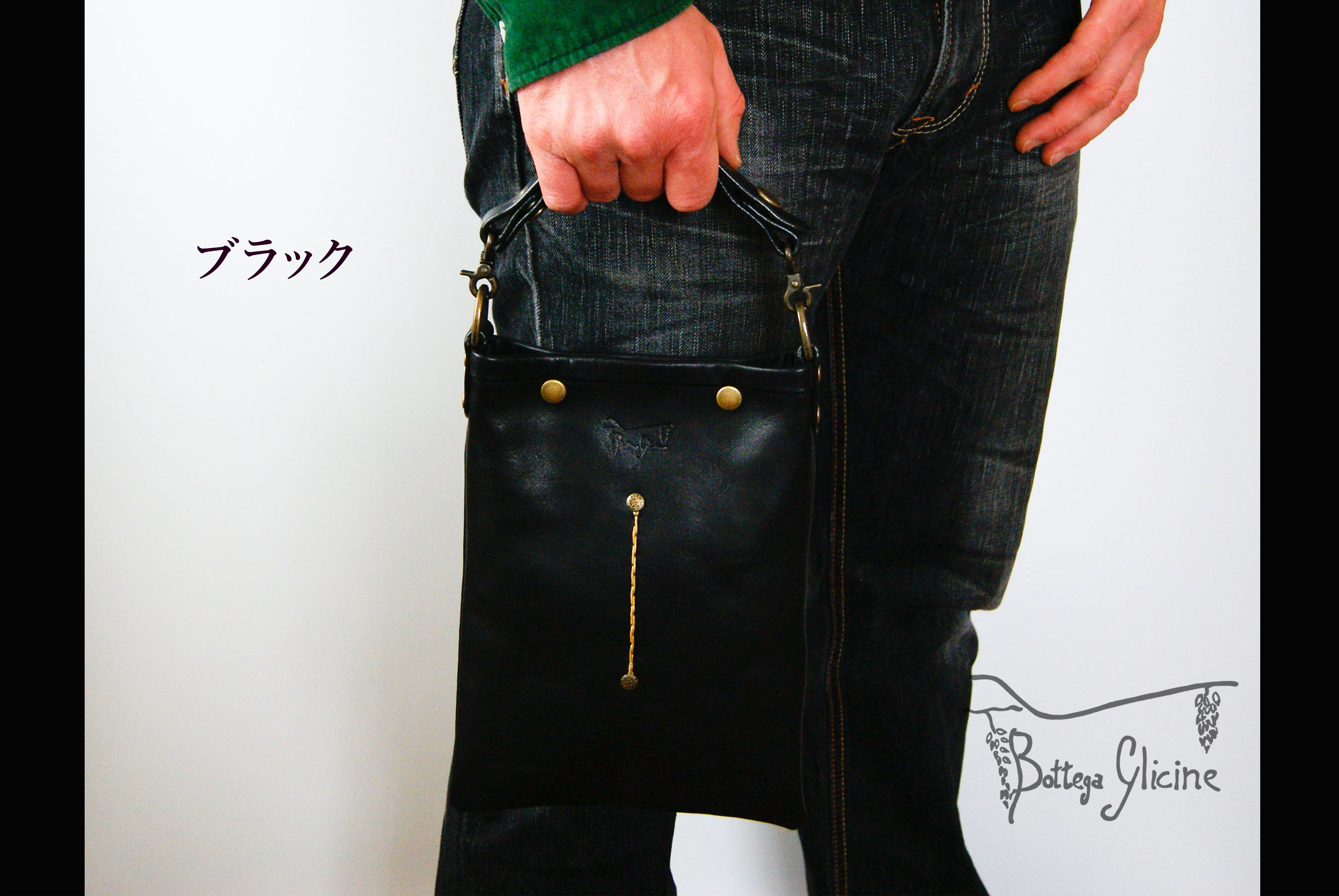 手縫いのフロント刺繍仕上げがワンポイント。ポケットのように脚が下がり、体にフィットします。普段使いだけでなく、マチがなく薄型のかばんは日常にもお出かけの時も