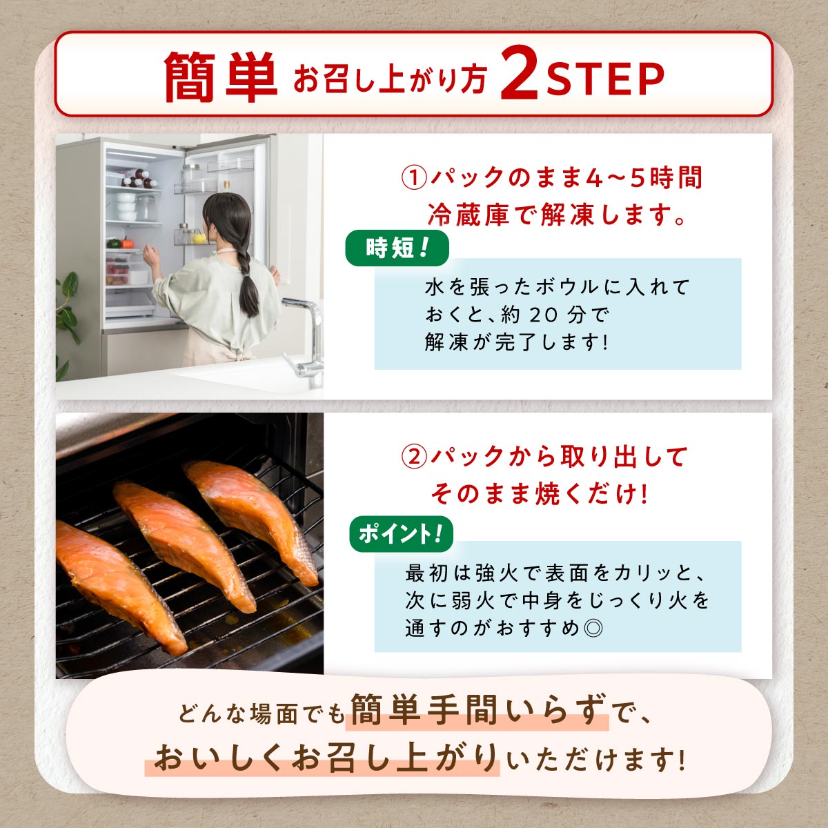 ※機器や切身の形で、焼き時間は異なります。状態を確認しながら、調理してください。