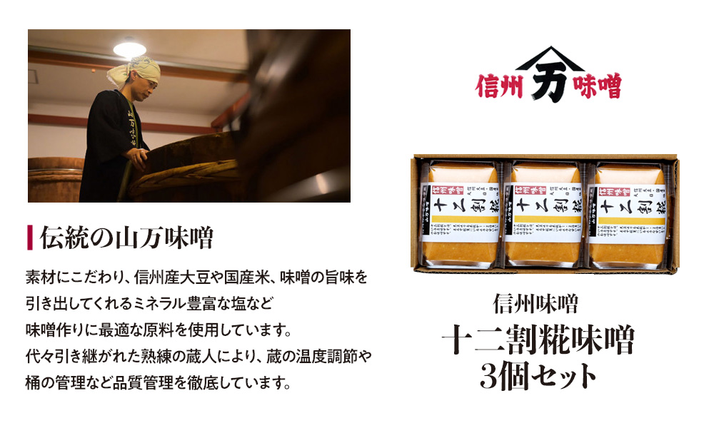 十二割糀味噌(信州安曇野産大豆、国産米、天日塩)270g×3個