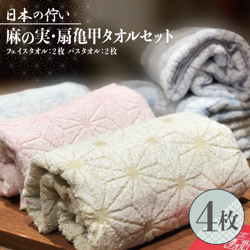 フェイスタオル 濃色(麻の実の紅唐色・扇亀甲の紅色)各1枚ずつ