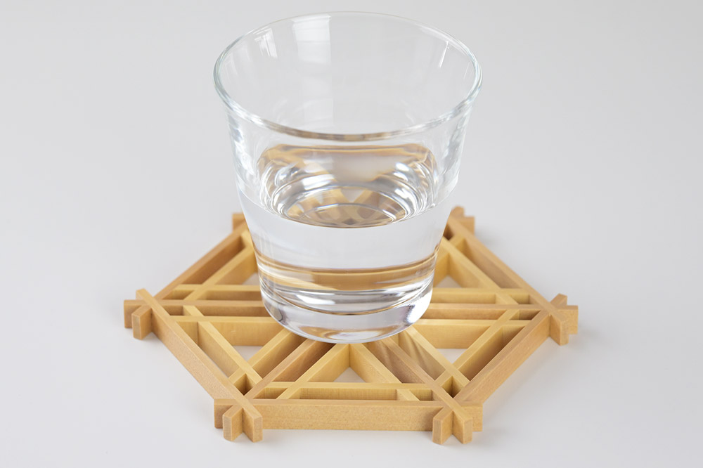 出来上がった組子細工は、オリジナルコースターとしてご使用できます。