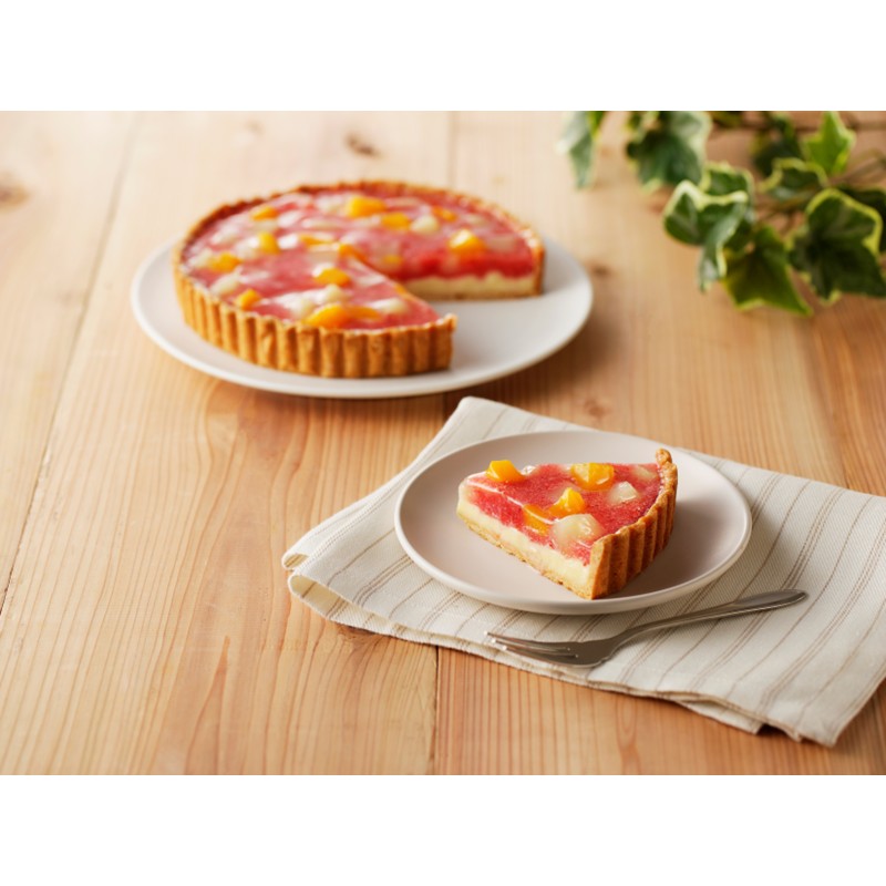 【あまおうタルト】いちご、牛乳、小麦粉、砂糖、バター、白桃シロップ漬け、黄桃シロップ漬け、加糖卵黄、ナパージュ、液卵、乳化剤製剤、ゼラチン、バニラペースト、食塩、調整水