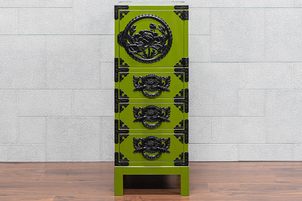 仙台箪笥の中でも極めてスリムなこのすきまチェストは、ご要望の声から誕生した、ほんの少しのデッドスペースを有効活用できる優れもの。