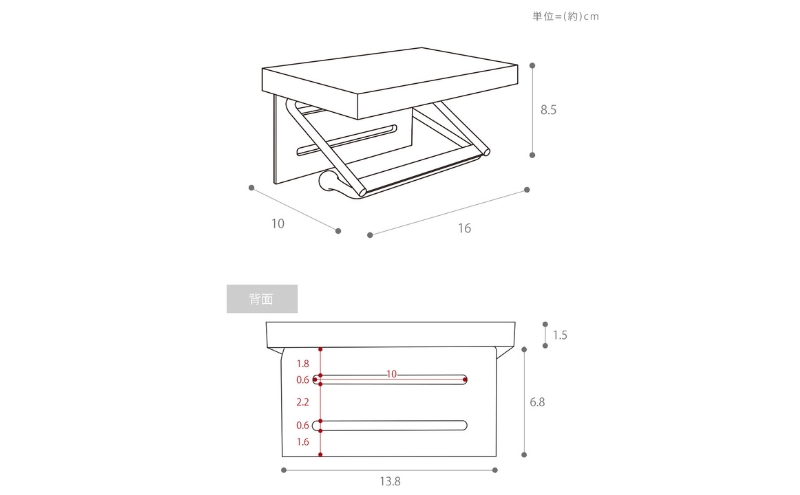 天板には使い勝手の良い、幅16×奥行10cmのスペースをご用意しました。