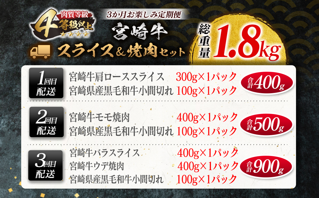 この機会に、ぜひ『≪3か月お楽しみ定期便≫宮崎牛スライス&焼肉セット』をご堪能ください。