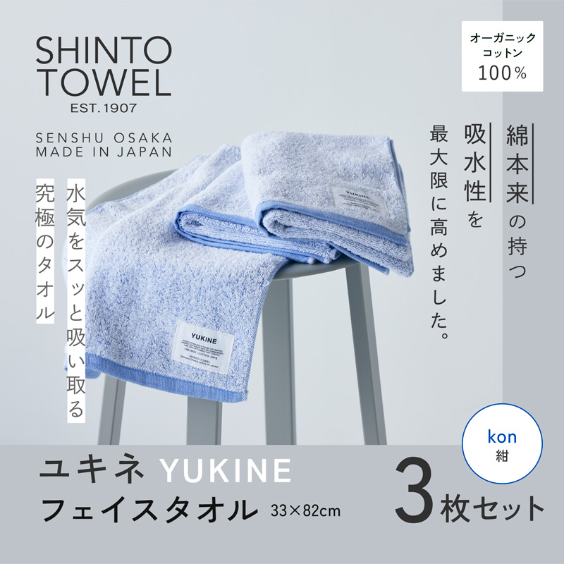 フェイスタオル 3枚、カラー:kon(紺)