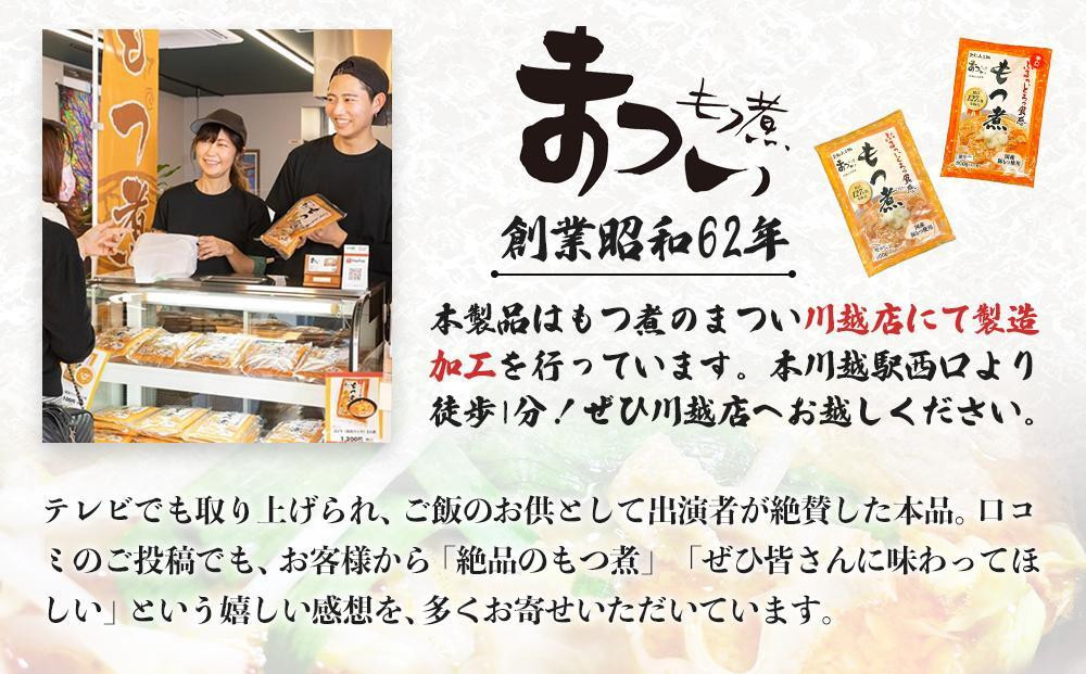 創業昭和62年、もつ煮まついの辛口もつ煮です。肉を厳選し、秘伝のタレで長時間コトコト煮込んだこだわりの逸品をお届けします!