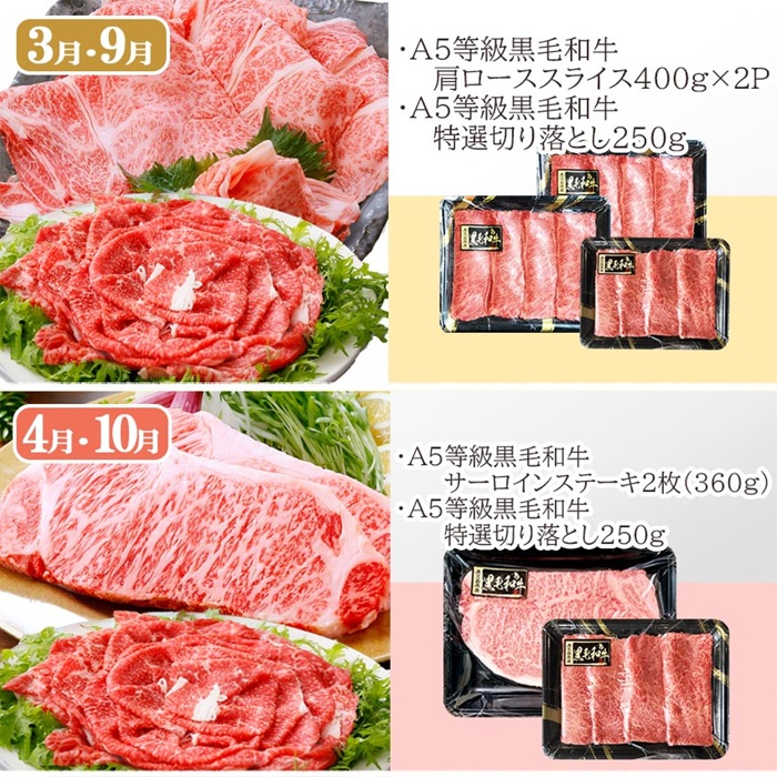 【3月・9月】A5等級黒毛和牛(霜降り肩ローススライス400g×2P・特選切り落とし250g)