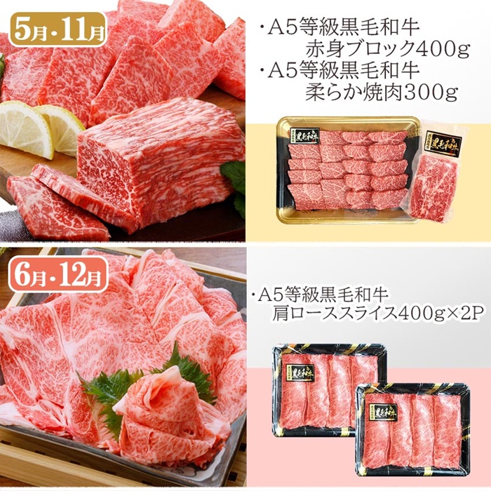 【5月・11月】A5等級黒毛和牛(モモブロック400g・柔らか焼肉300g)