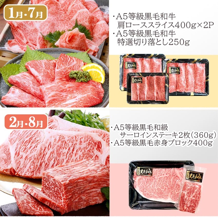 鹿児島県産A5等級黒毛和牛を毎月お届け致します。