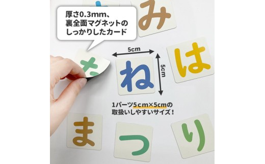 おべんきょうの最初の一歩に!マグネットシートでできた文字カード、マグネットカードのうち「ひらがなマグネットカード」と「カタカナマグネットカード」をセットにしました。