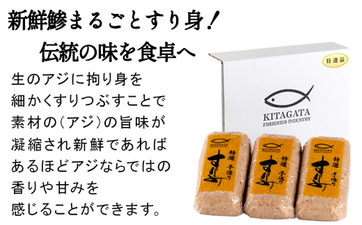 生のアジに拘り身を細かくすりつぶしねることで素材の(アジ)の旨味が