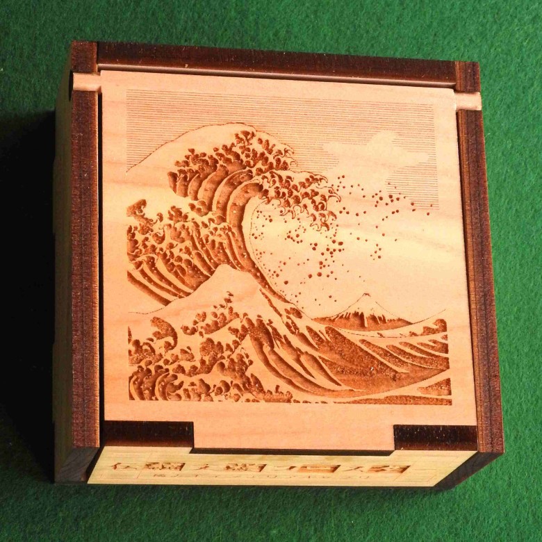 特製のケースには有名な神奈川沖浪裏を彫刻しました。