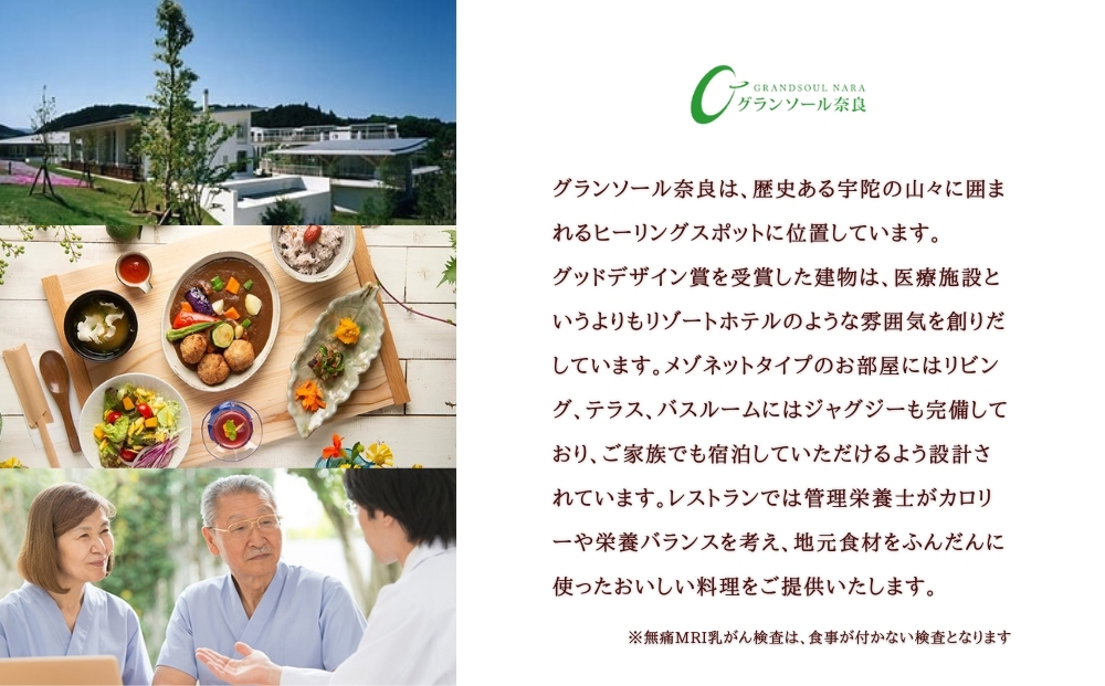 ※寄付お申し込み受付後、グランソール奈良よりチケット(無痛MRI乳がん検査ギフト券(1名様分))を送付いたします。
