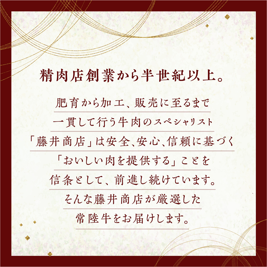 精肉店創業から半世紀以上。肥育から加工、販売に至るまで一貫して行う「藤井商店」が常陸牛特選A5シャトーブリアンをお届けします。