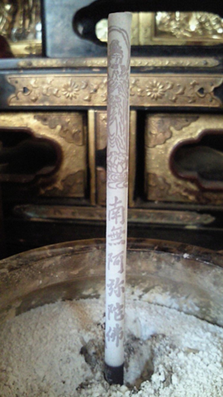 お線香に火を点けるとゆっくり燃えてゆき、灰が倒れずに残り、そこに文字が浮かび上がってくるお線香です。