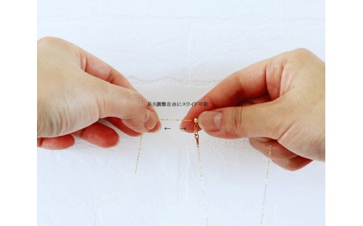 K18 のチェーンとスライドピンタイプのデザインにより、長さを自由に調整できるため、さまざまなスタイルに合わせてお楽しみいただけます。