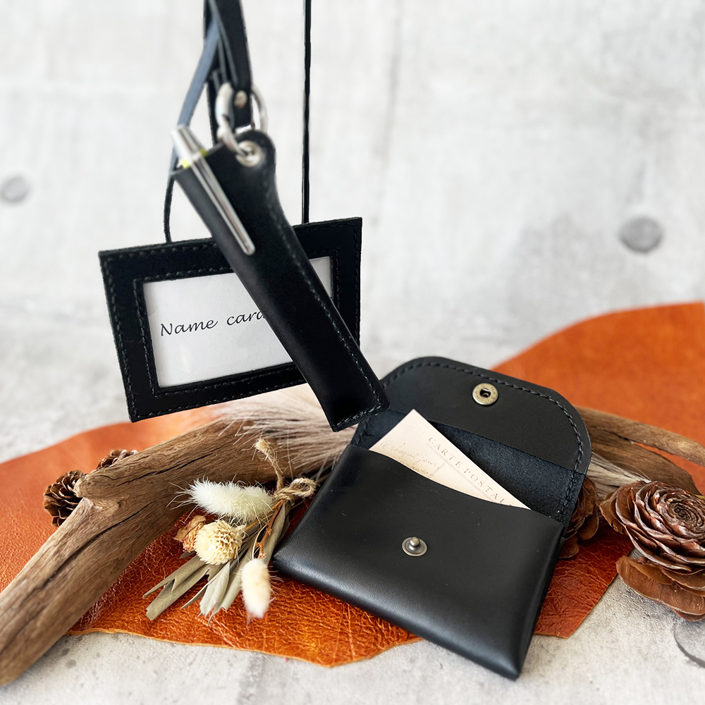 レザー3点セット ブラック (ネームフォルダー、ペンフォルダー、カードケース)|名刺入れ 文房用品 事務用品 ビジネス 手作り [0184]-[26400184]