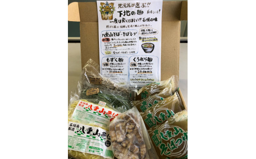 定番の丸麺、平麺のほか、石垣島産モズクを練り込んだモズク生麺。