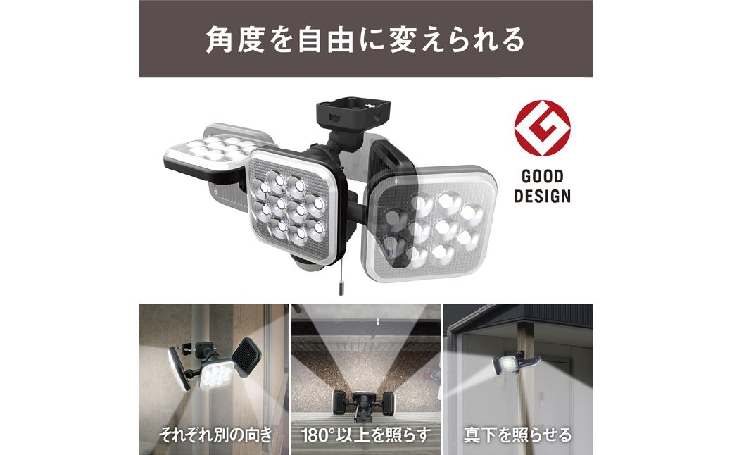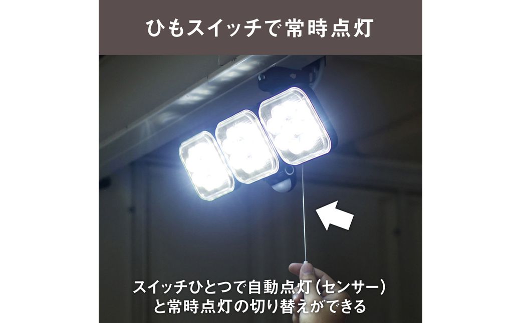 照射範囲、明るさを追求した利便性の高いセンサーライトです。防犯対策に。