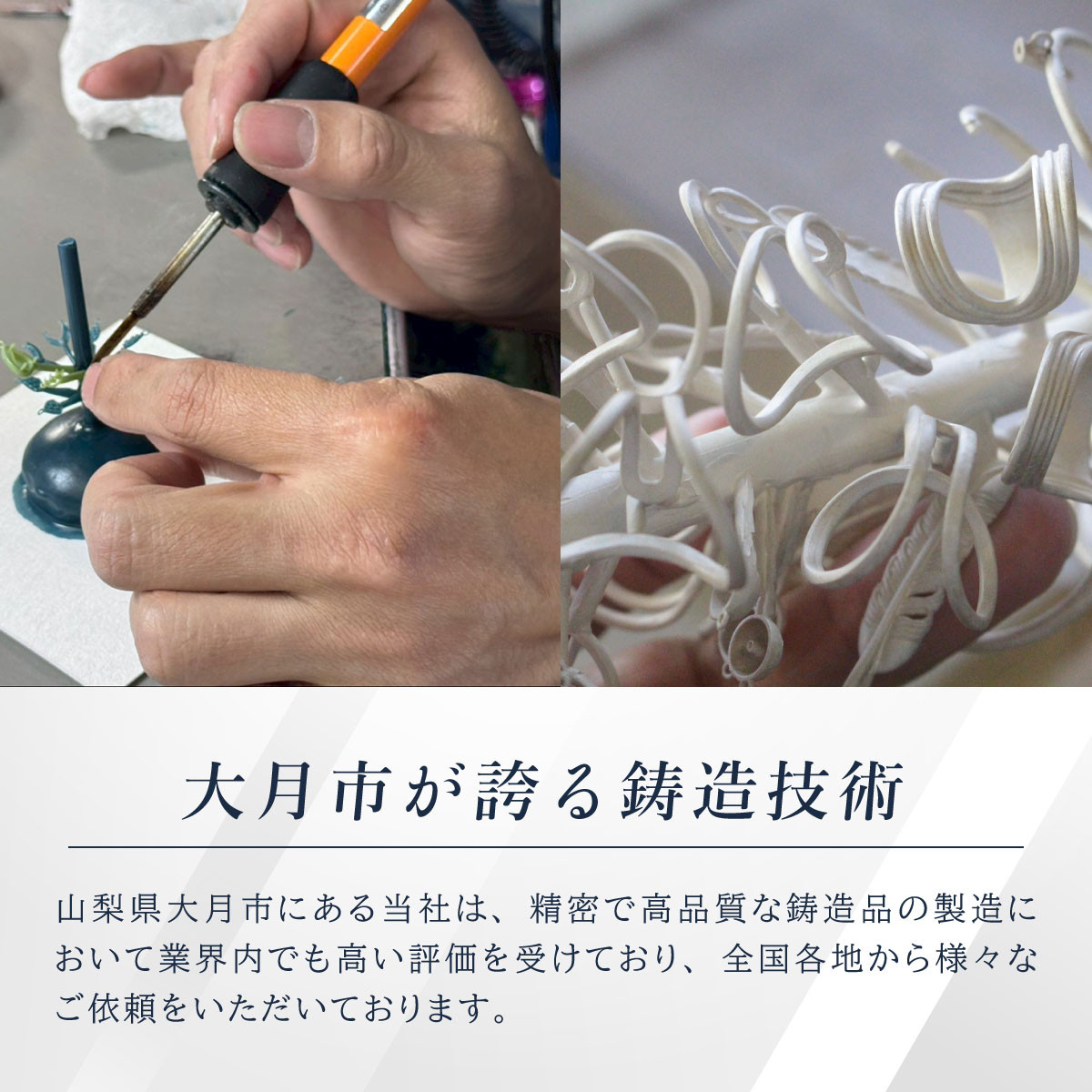 大月市には古くから桃太郎の伝説があり、岩殿山は鬼の住処とされていました。伝説にちなんだに鬼の金棒を、細部に至るまで精巧に再現した、当社の職人の技術の結晶です。