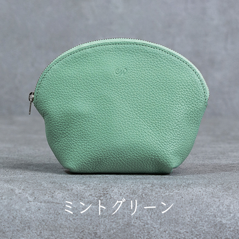 革の柔らかさを活かしたコロンと丸いファスナーポーチ。