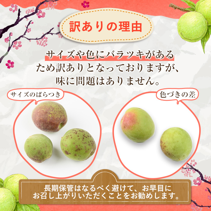 訳ありの理由:サイズや色にバラツキがありますのでご了承ください。味や品質に問題はありません。