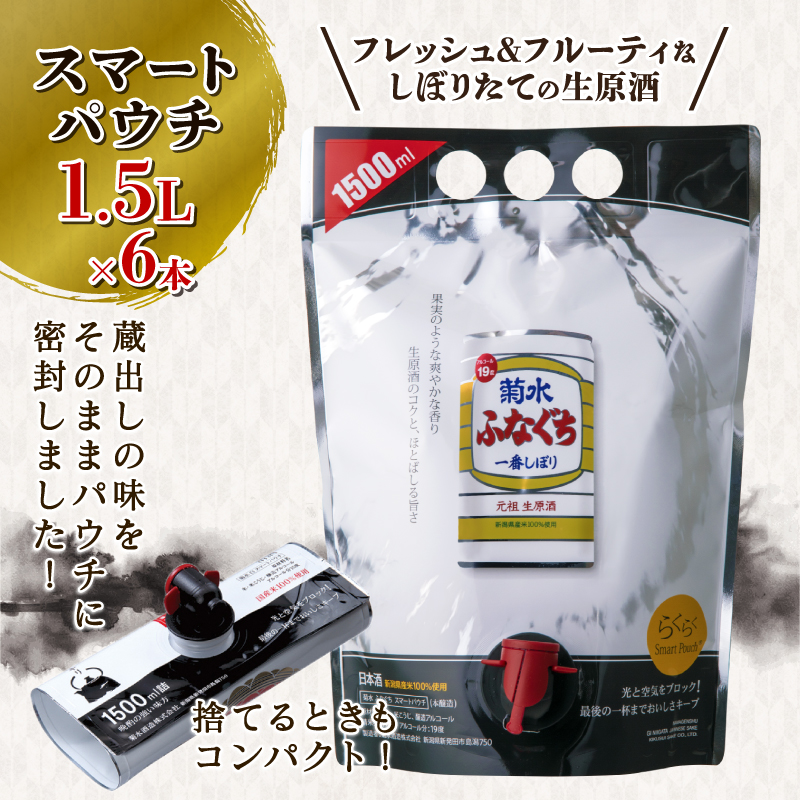 地酒 日本酒 ふなぐち 1.5L パウチ スマートパウチ 6本 新潟県 新発田市 菊水酒造 生原酒