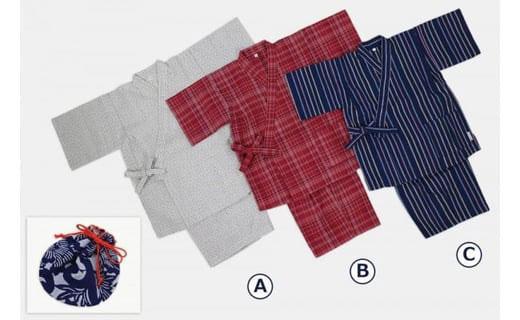阿波しじら織で丁寧にお仕立てした子供用甚平です。しじら織の特徴であるシボは通気性に優れ、綿は肌にやさしく汗をかきやすい子供さんの日常着にも適しています。