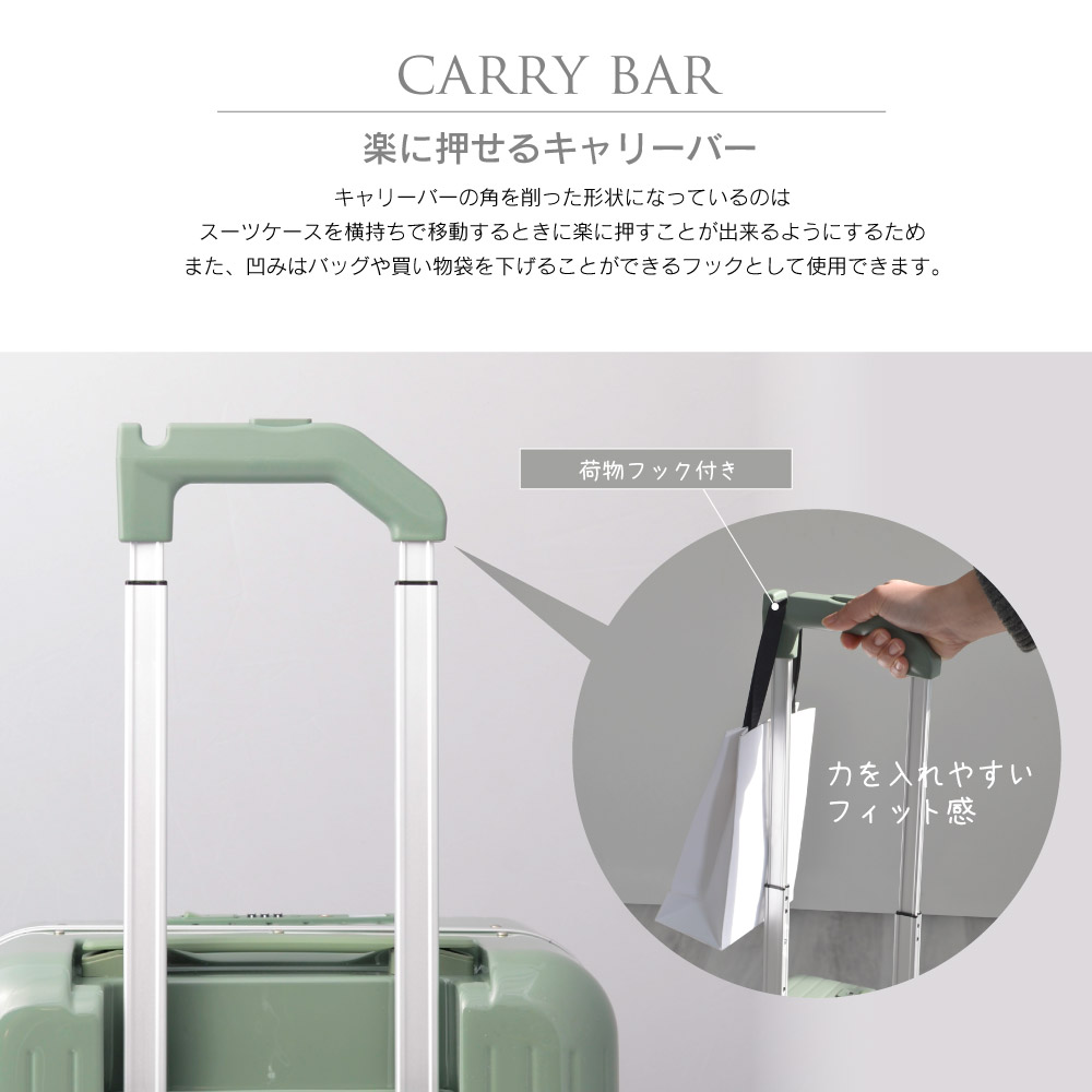 ロック部分はTSAロックを搭載、多段階調整可能なキャリーバー。