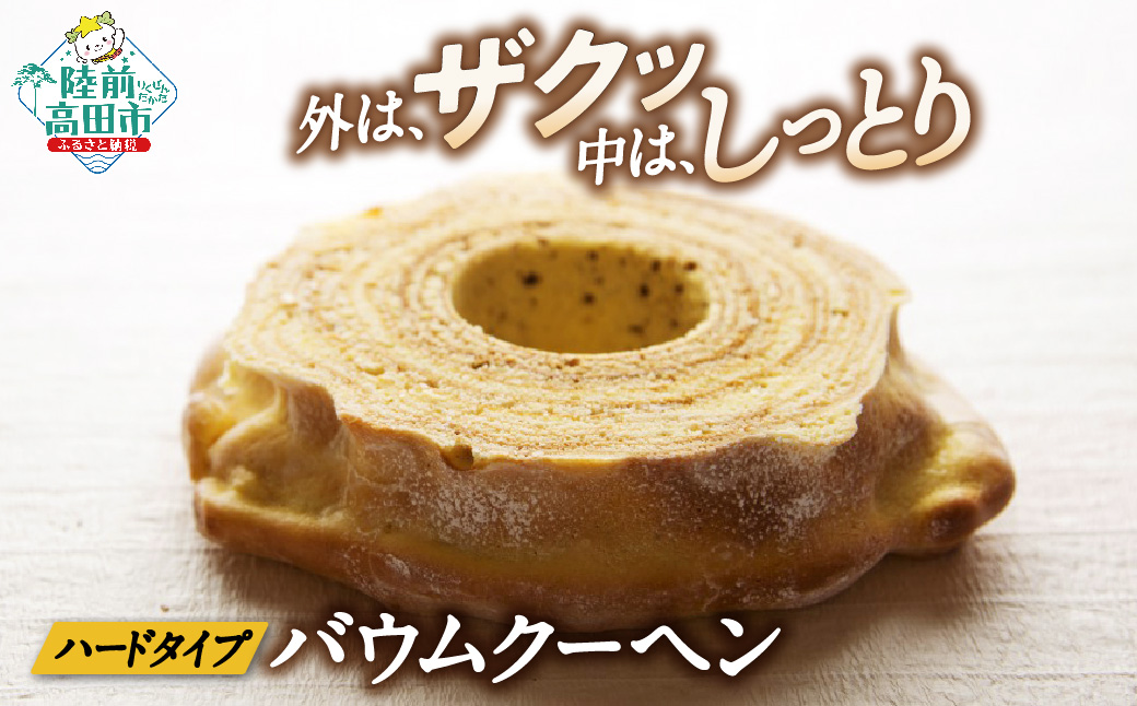 一般的によく見かける柔らかいバウムクーヘンとは違い、こちらはハードタイプのバウムクーヘンです。遠赤外線オーブンを使用しているので、外側はカリッっと、中はしっとりした食感でバターの風味もよく、何個でも食べてしまいそうな美味しさです!
