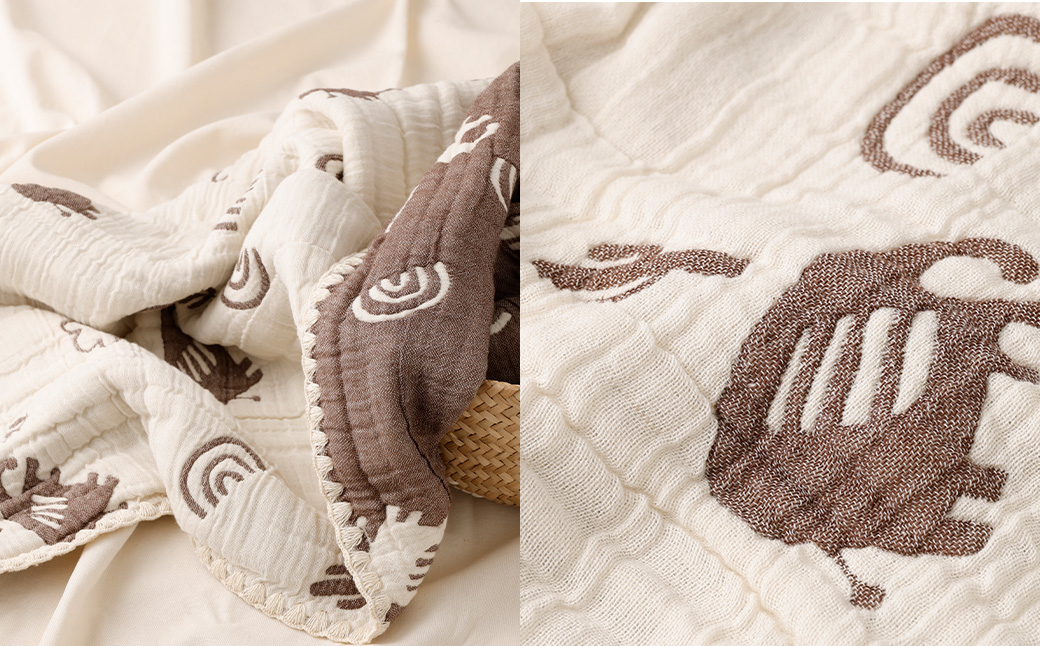 6層のガーゼは空気を含み、ふんわりと空気や汗を取り込み、適度な温度に調節してくれます。