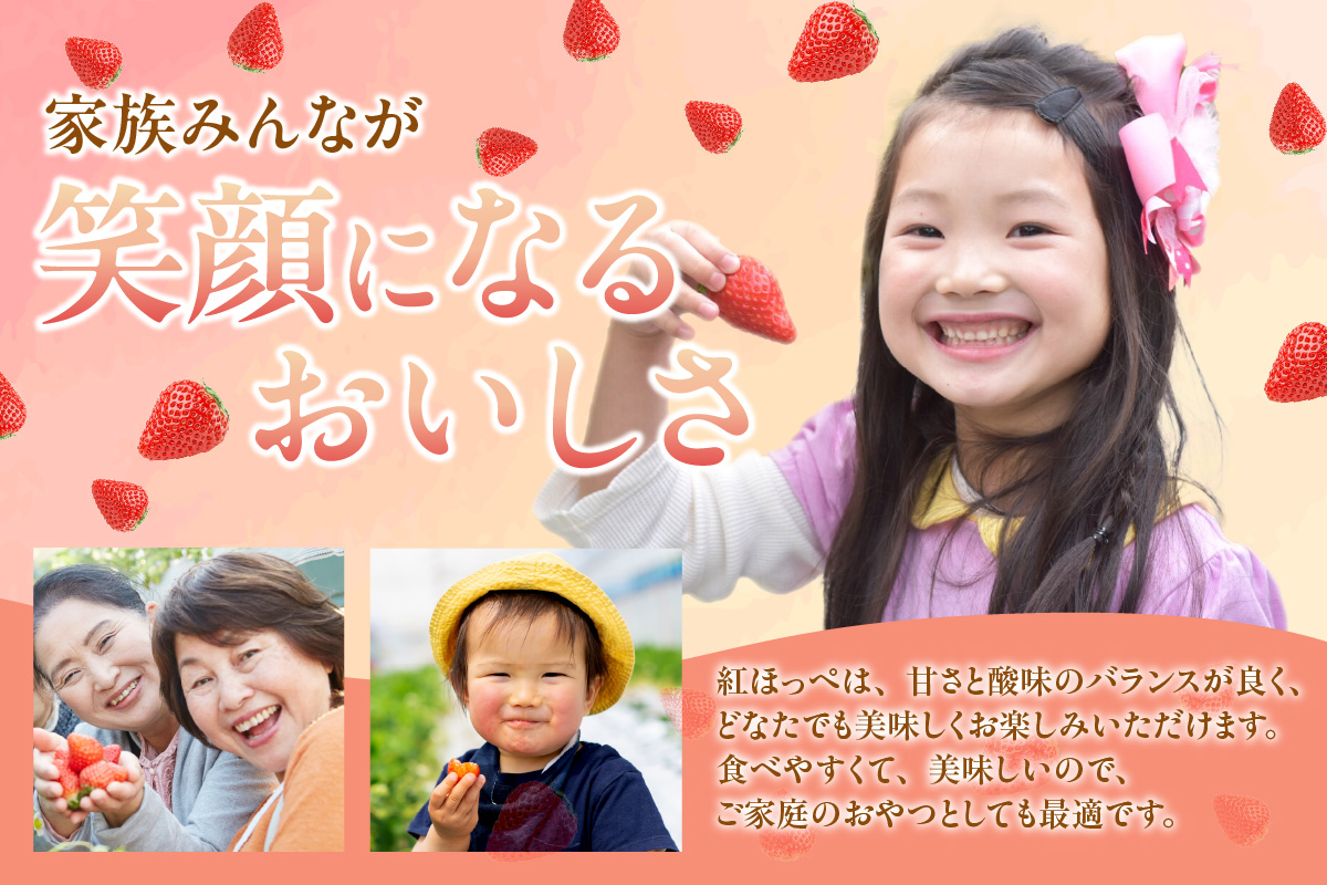 生産地直送でしか味わえない完熟「紅ほっぺ」を味わってください。