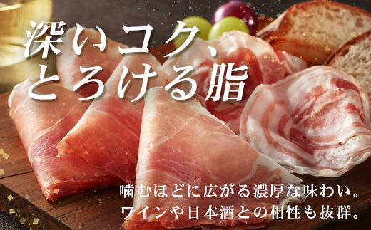 厳選した鹿児島黒豚とこだわりの塩だけを使い、2年以上かけて自然熟成させた生ハムです。