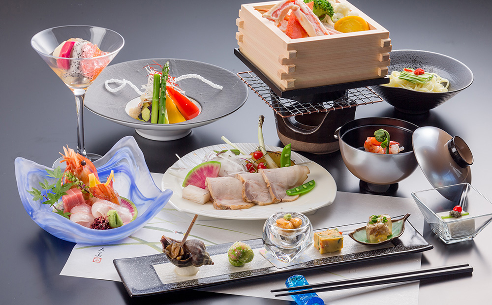 本旅亭で召し上がっていただく本格的な和風会席料理には、厳選された沖縄と北海道の食材が融合します。