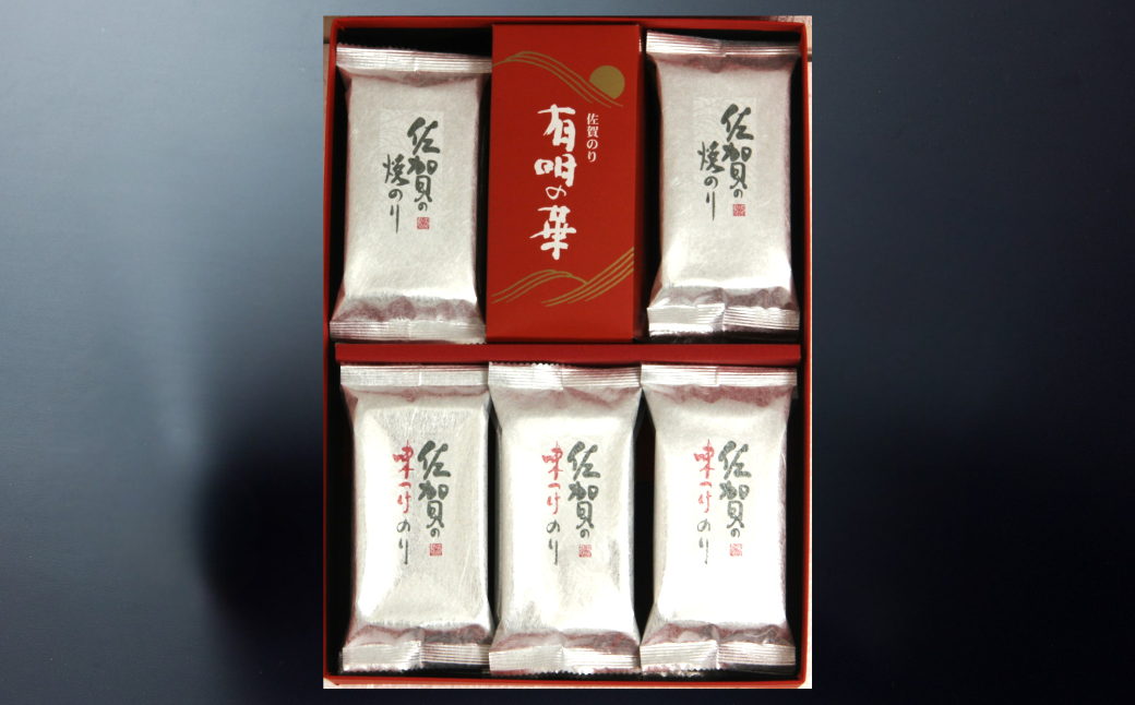 味付のり:乾のり(佐賀県産)、しょうゆ(小麦・大豆を含む)、砂糖、魚介エキス(えびエキス)、食塩、水飴、清酒、みりん/調味料(アミノ酸等)、甘味料(カンゾウ)、香辛料抽出物