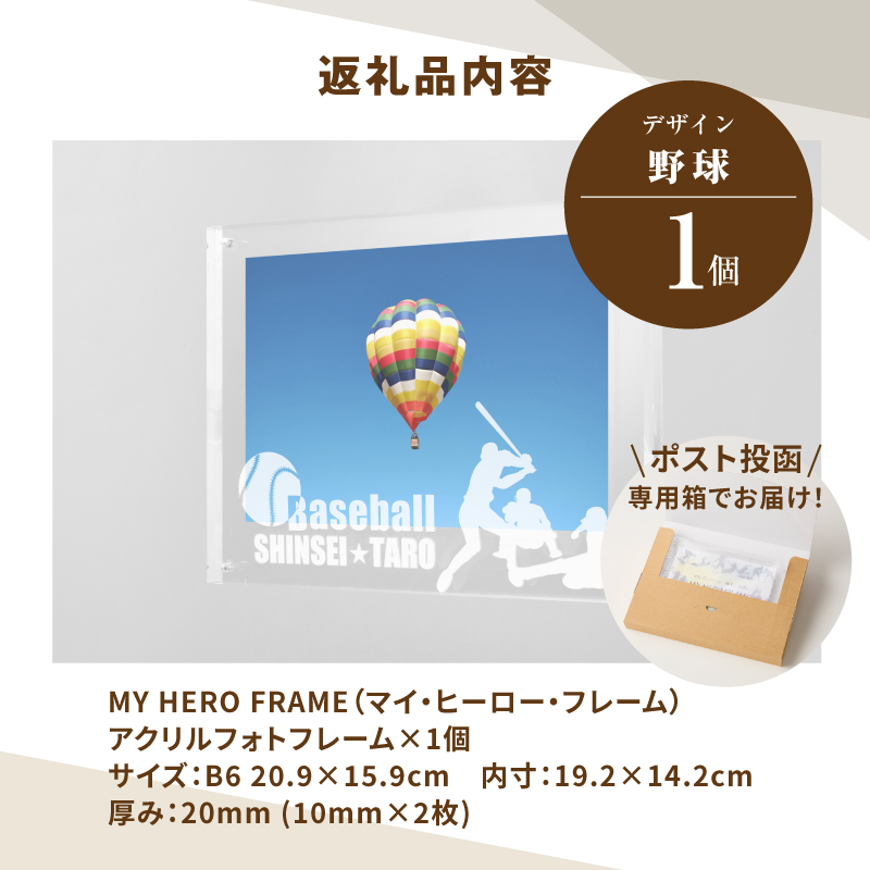 透明感のあるアクリルに競技デザインと名前が刻印され、中には思い出の写真を挟んで飾れます。