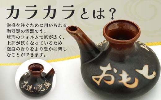 古酒の味わいを楽しむ為に、陶器の酒器(カラカラ)をセットにしました。