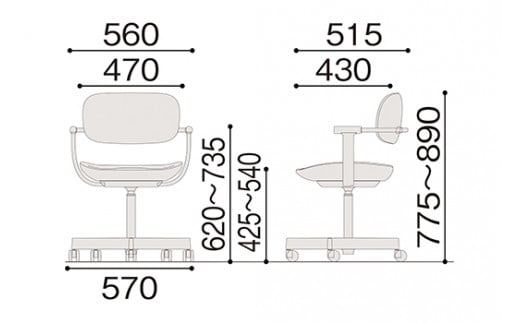 [フレーム:L4/ペールオリーブ KC張地:4/ゼスト ]【サイズ】W560(脚:570mm)×D515×H775~890mm(SH425~540mm)