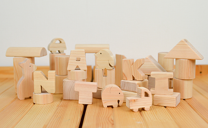 ※積み木および箱は天然木ですので、高温の場所に置かれると木が乾燥してヒビが入ったり、反りが出るおそれがございますのでご注意ください。
