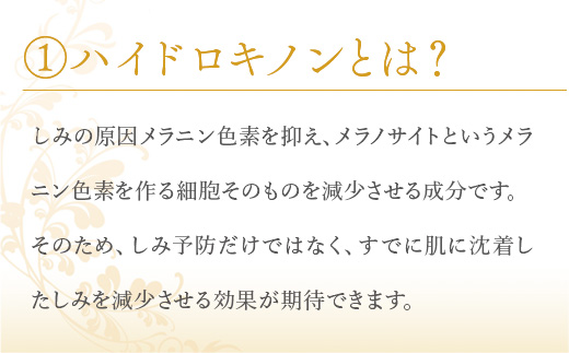 しみの原因メラニン色素を抑え、メラノサイトというメラニン色素を作る細胞そのものを減少させる成分です。