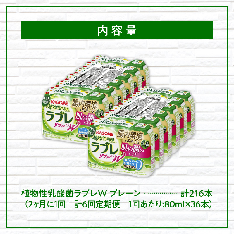 1度につき、植物性乳酸菌ラブレW プレーン36本入りを隔月 計6回お届けいたします!