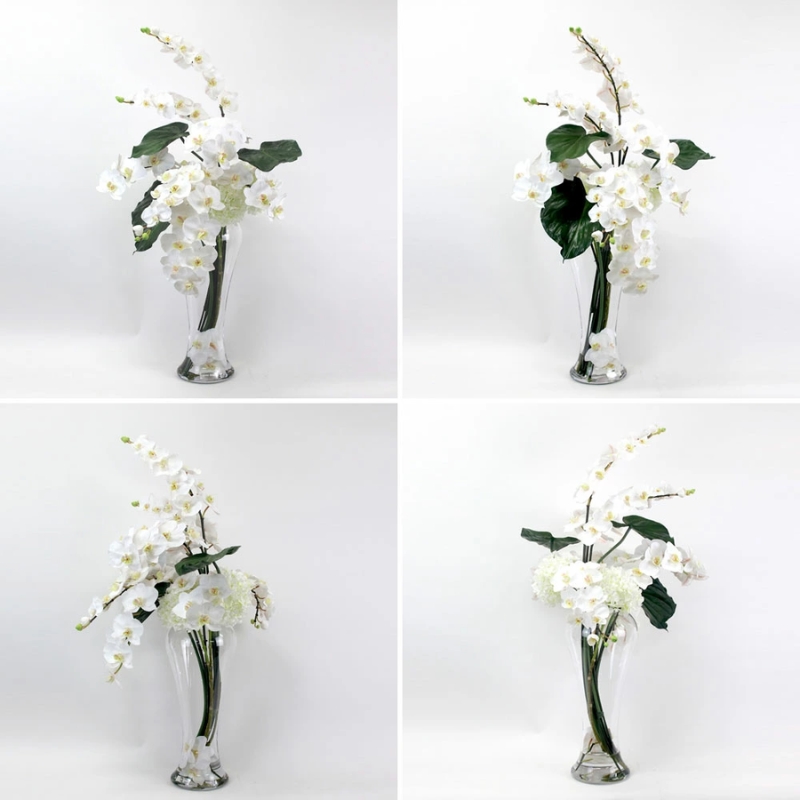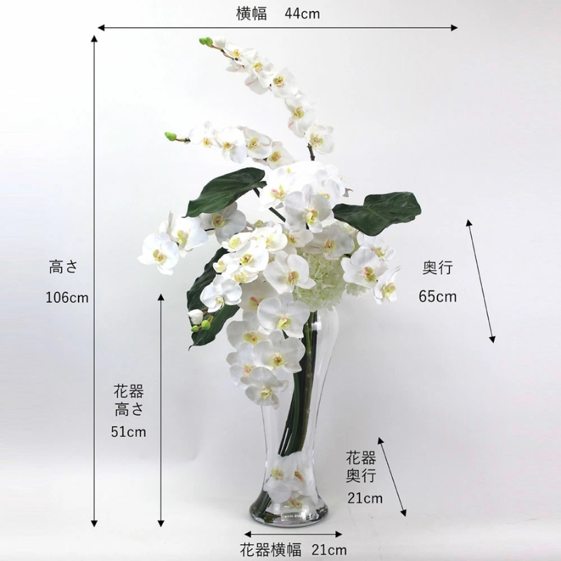 ファレノプシスの柔らかなラインと、フラワーベースの丸みがマッチしたナチュラルモダンなアレンジメントです。