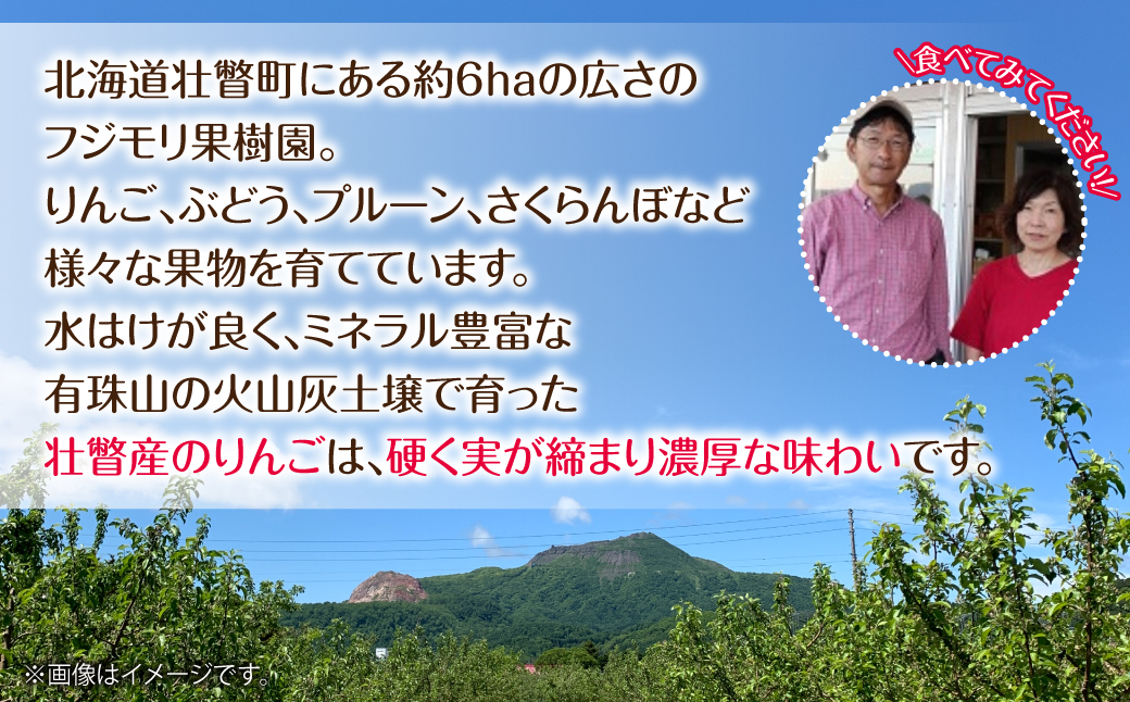 北海道壮瞥町の『フジモリ果樹園』は、約6haの広さの果樹園でりんご、ぶどう、プルーン、さくらんぼなどの様々な果物を育てています。有珠山の火山活動に由来する土壌は水はけが良く、リン酸などの養分も豊富で、実が締まり、味わいのある果物が育ちます。