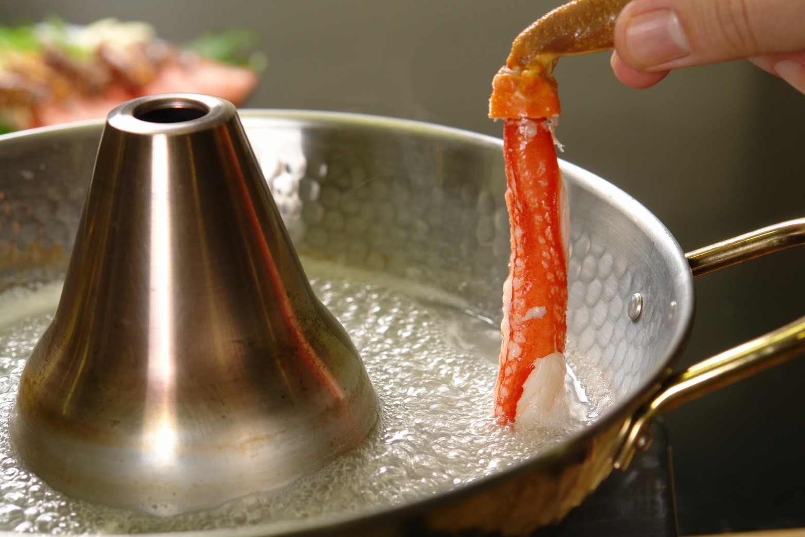 自社窯で蟹を茹でた時に出た蟹の旨味たっぷりの茹で汁を使用した蟹鍋専用の鍋つゆがセットになっていて、