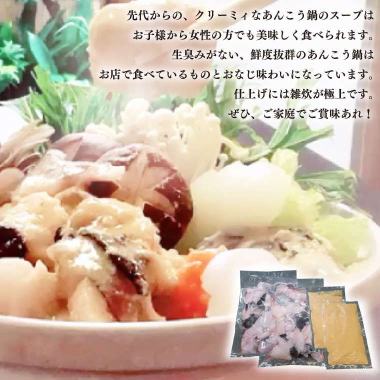 先代からの、クリーミィなあんこう鍋のスープはお子様から女性の方でも美味しく食べられます。