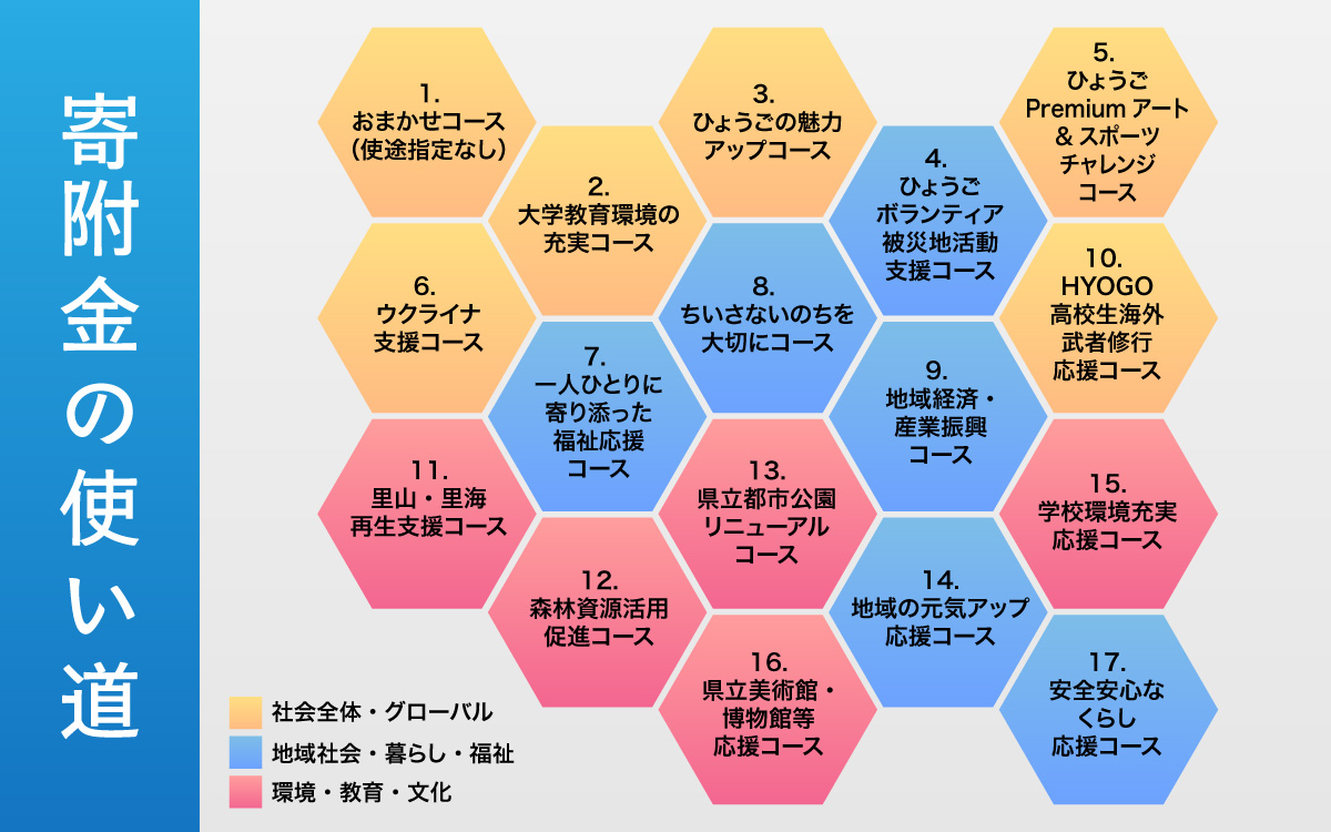 いただいたご寄附は、兵庫県の活性化のために大切に活用させていただきます。